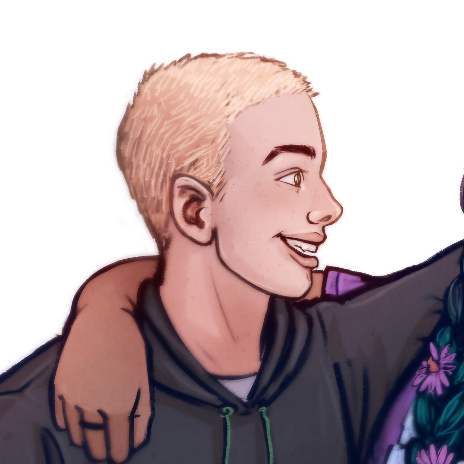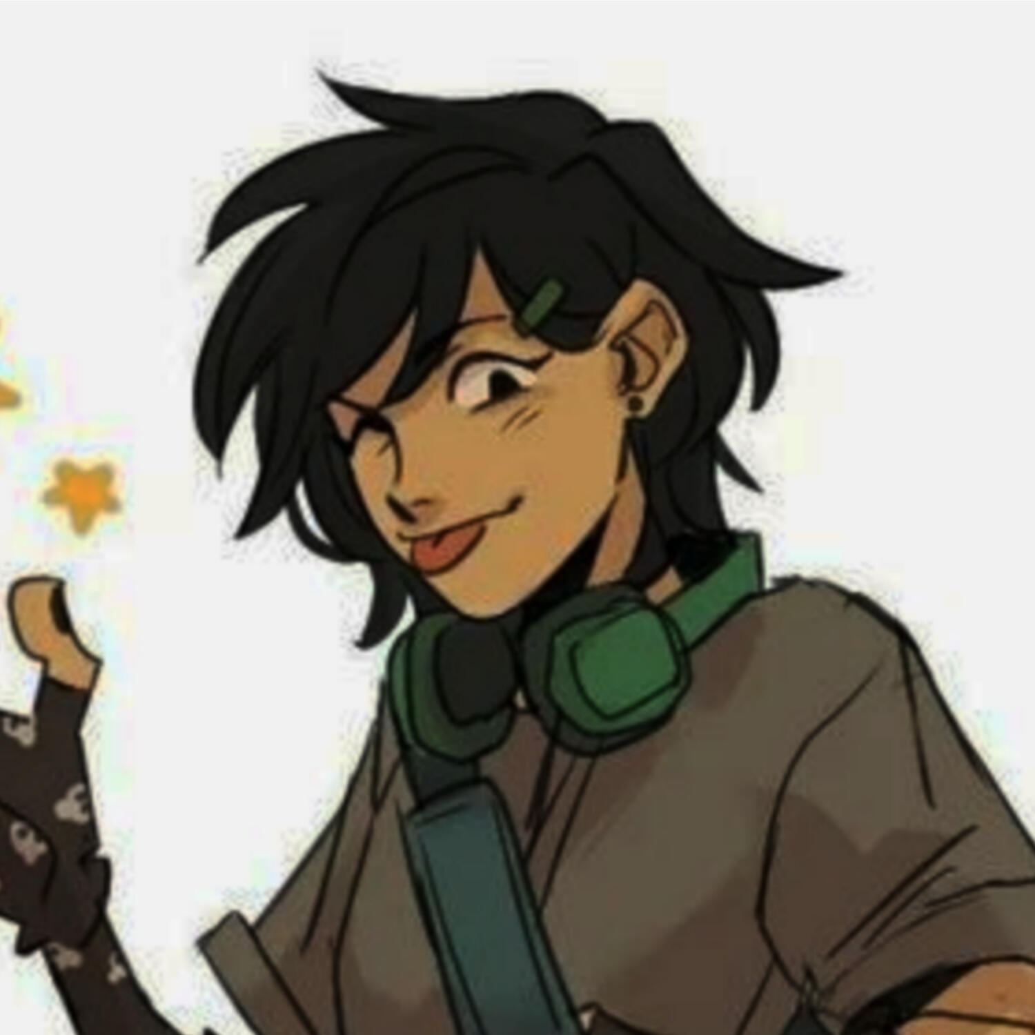 explanation: his parents are lowkey (highkey) having a hard time w/ the whole trans thing and hes also gay as hell. also hes a blue haired he/him w/ earrings as a staple part of his character design