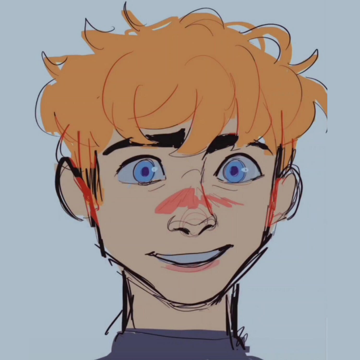 explanation: an absolute disaster gay, crushes hard and constantly gay panics. platonic flirt but unrealizing to that fact. very easily excited and in turn forces himself to tone it down when he catches it