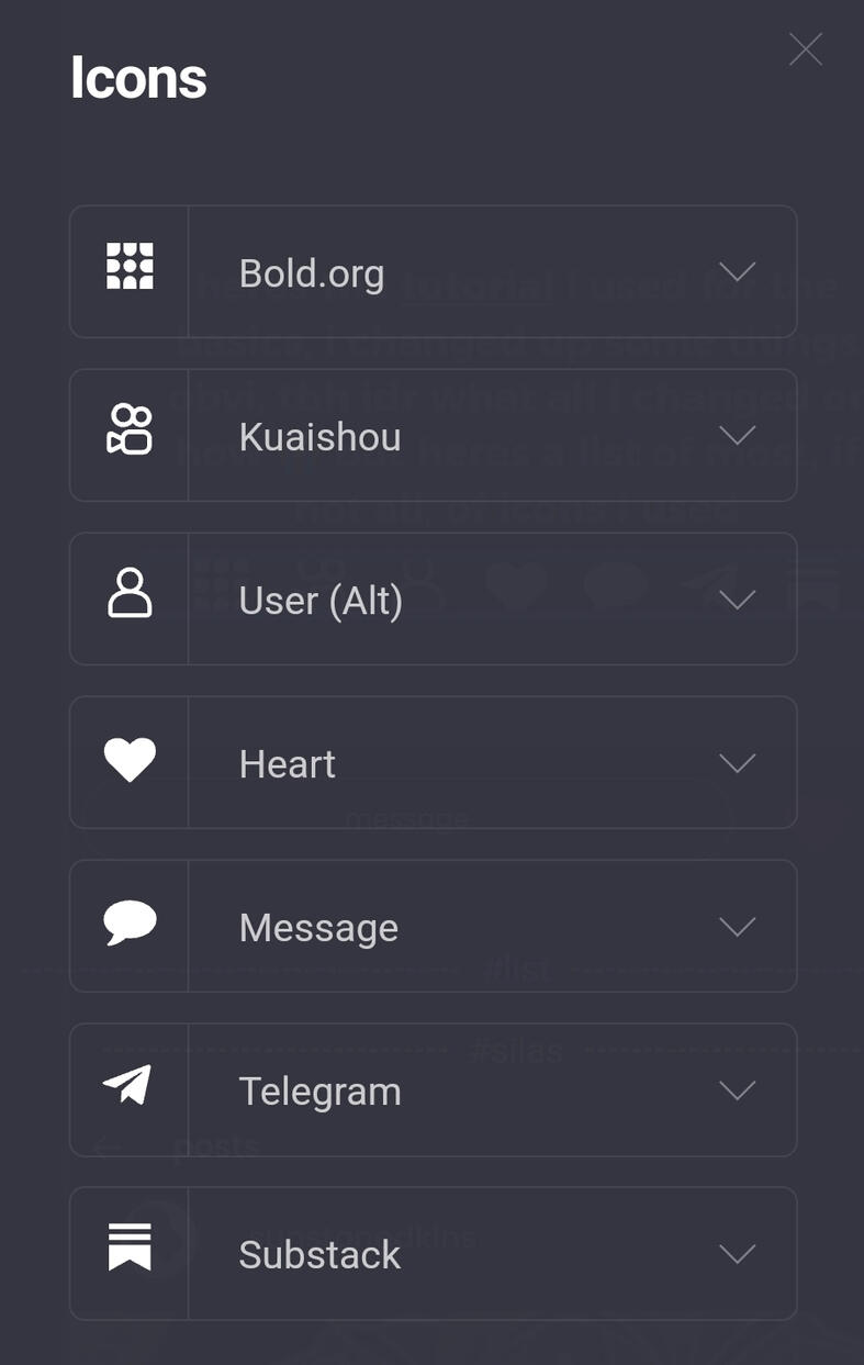 heres the tutorial i used for the basics, i changed up some things obvi, tbh idr what all i changed or how 😭 but heres a list of most, if not all, of icons i used
